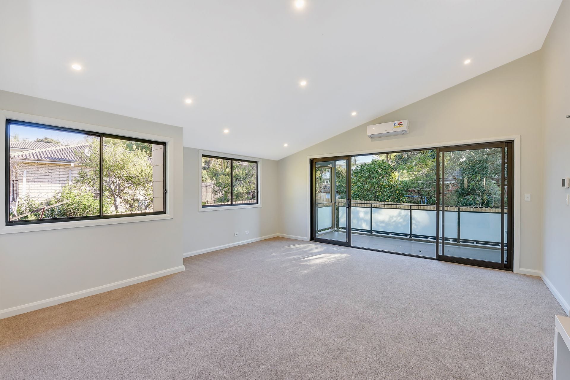 - Open plan living with lounge and dining room, sliding glass door to balcony
