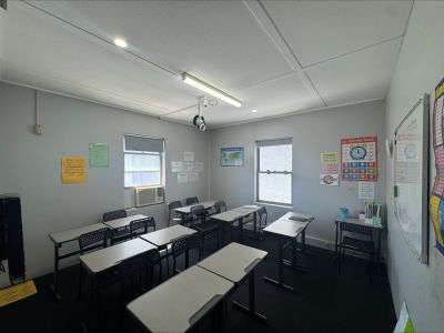 • Impressive entry foyer, kitchen, and male and female bathrooms shared by 4 spaces.